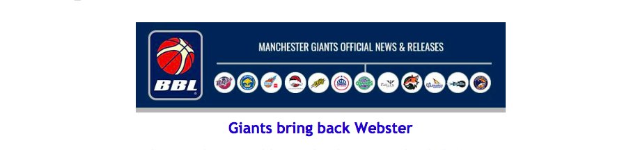 Webster is the second former Giant to return to the club this summer, following the re-signing of James Jones, joining Callum Jones and Ingus Bankevics, both former team-mates of Webster, in the Giants roster for the new season.